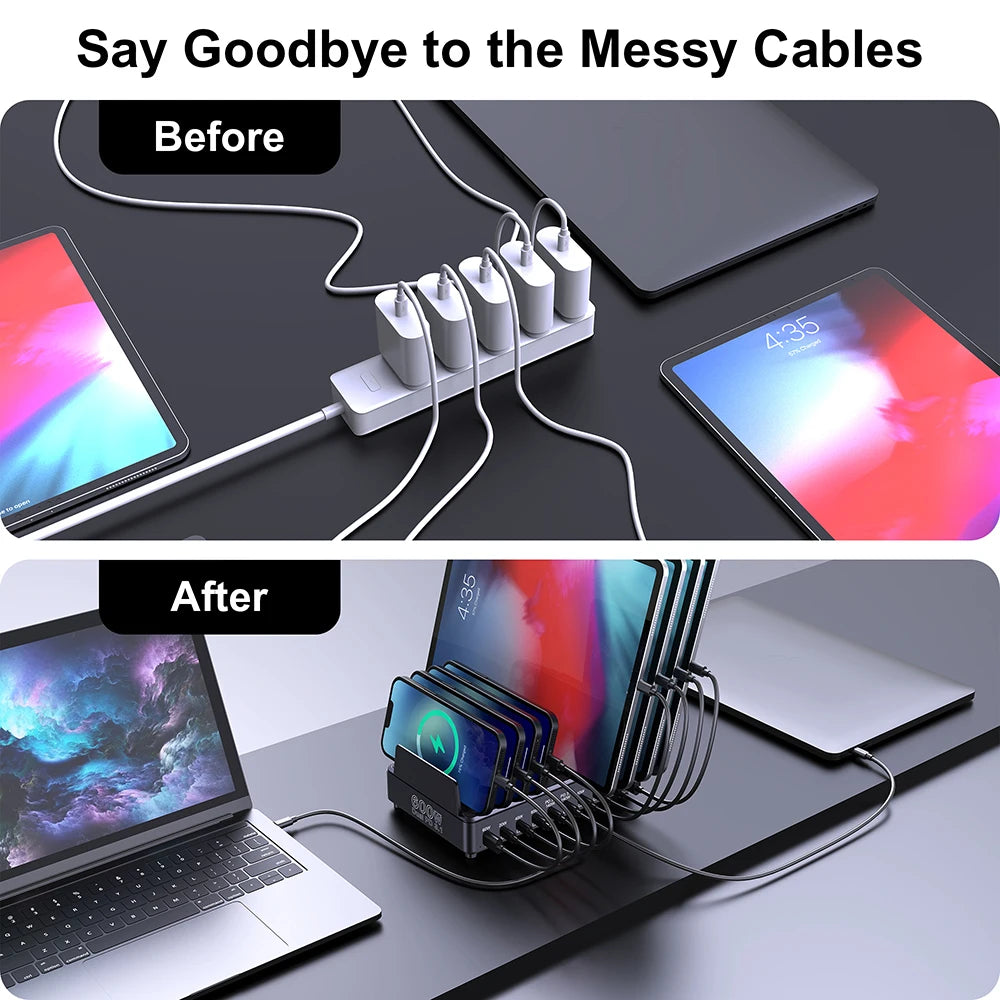 Ueetop 600W Multi USB Fast Charger 10-Port GaN PD 3.1 Charging Station Stand for MacBook iPhone 16 15 iPad Samsung Tablet Laptop