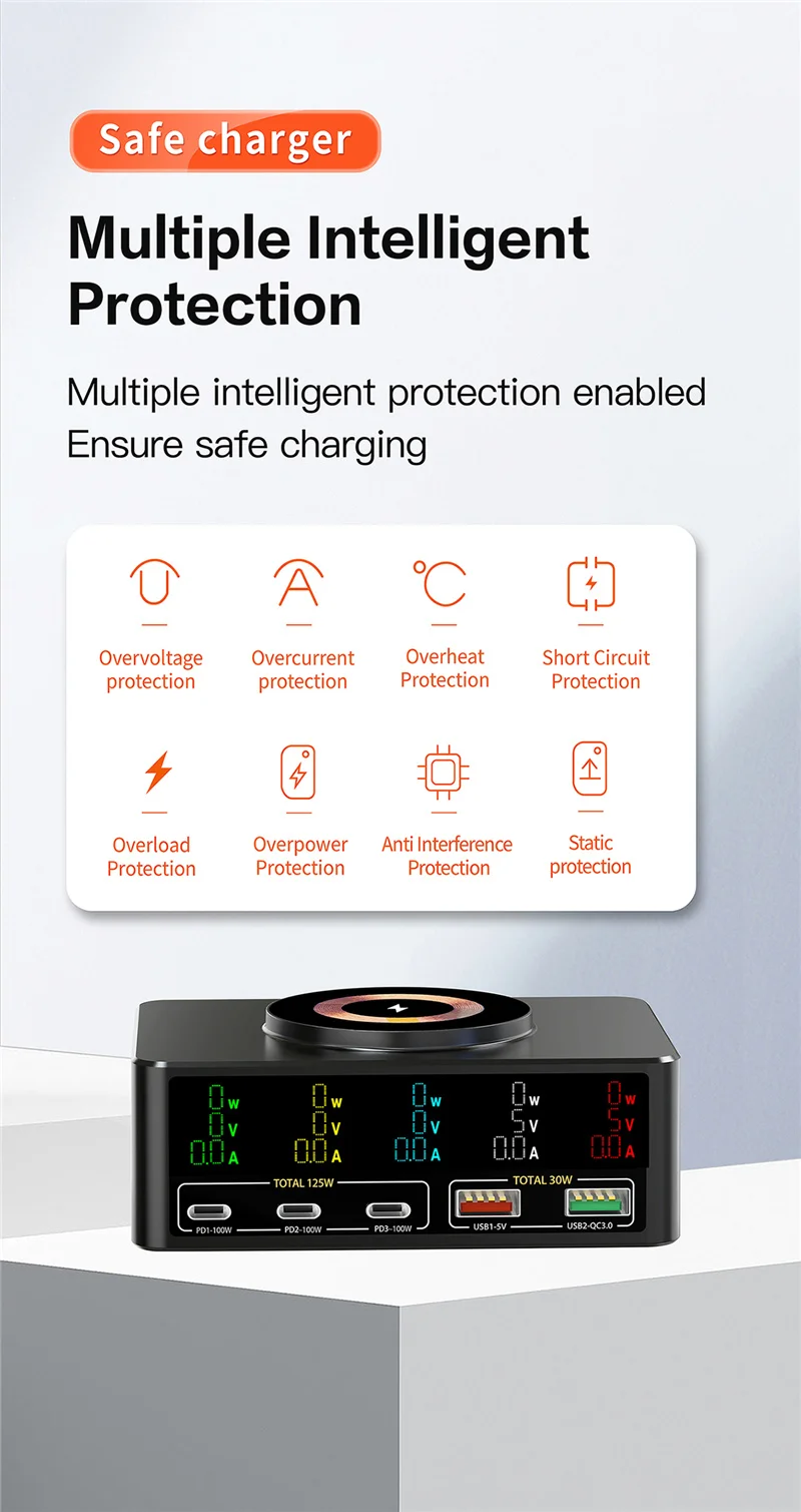 1.Multiple built-in safeguards fully protect against over-current, over-charging and over-heating for safe and fast charging.
