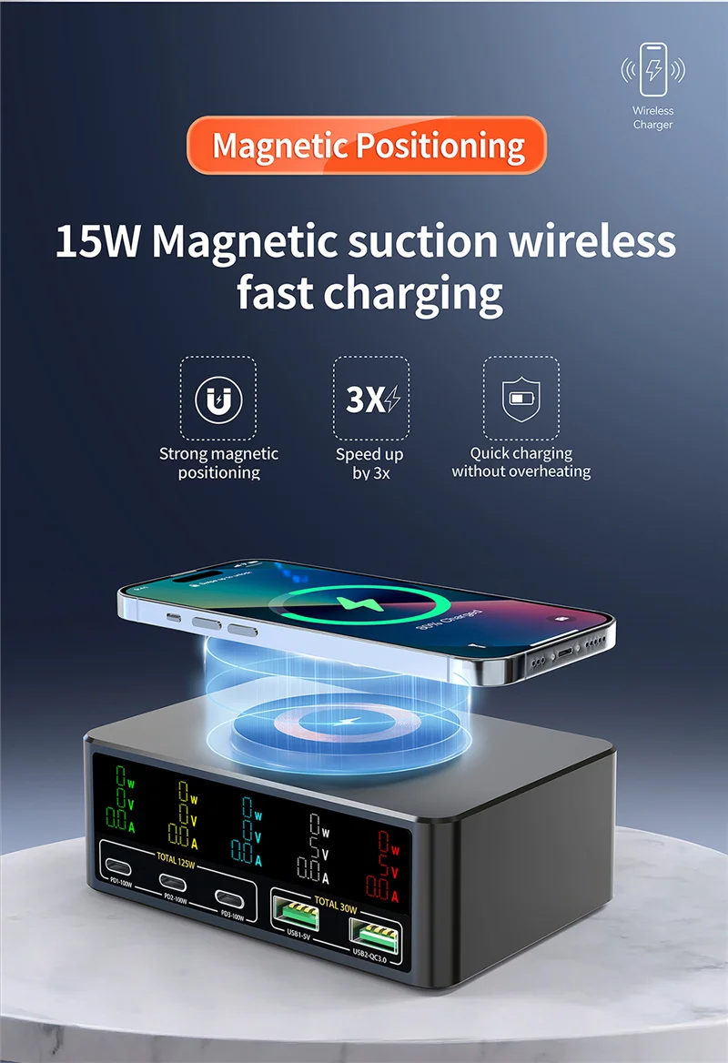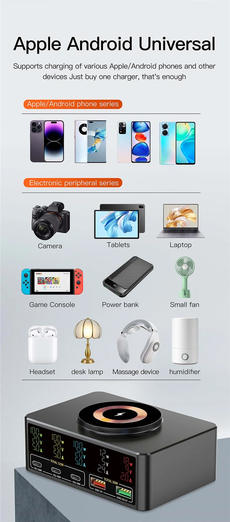1080W USB GaN Charger Fast Charging Station, with Magnetic Wireless Charge For iPhone 1080W USB GaN Charger Fast Charging Station, with Magnetic Wireless Charge For iPhone