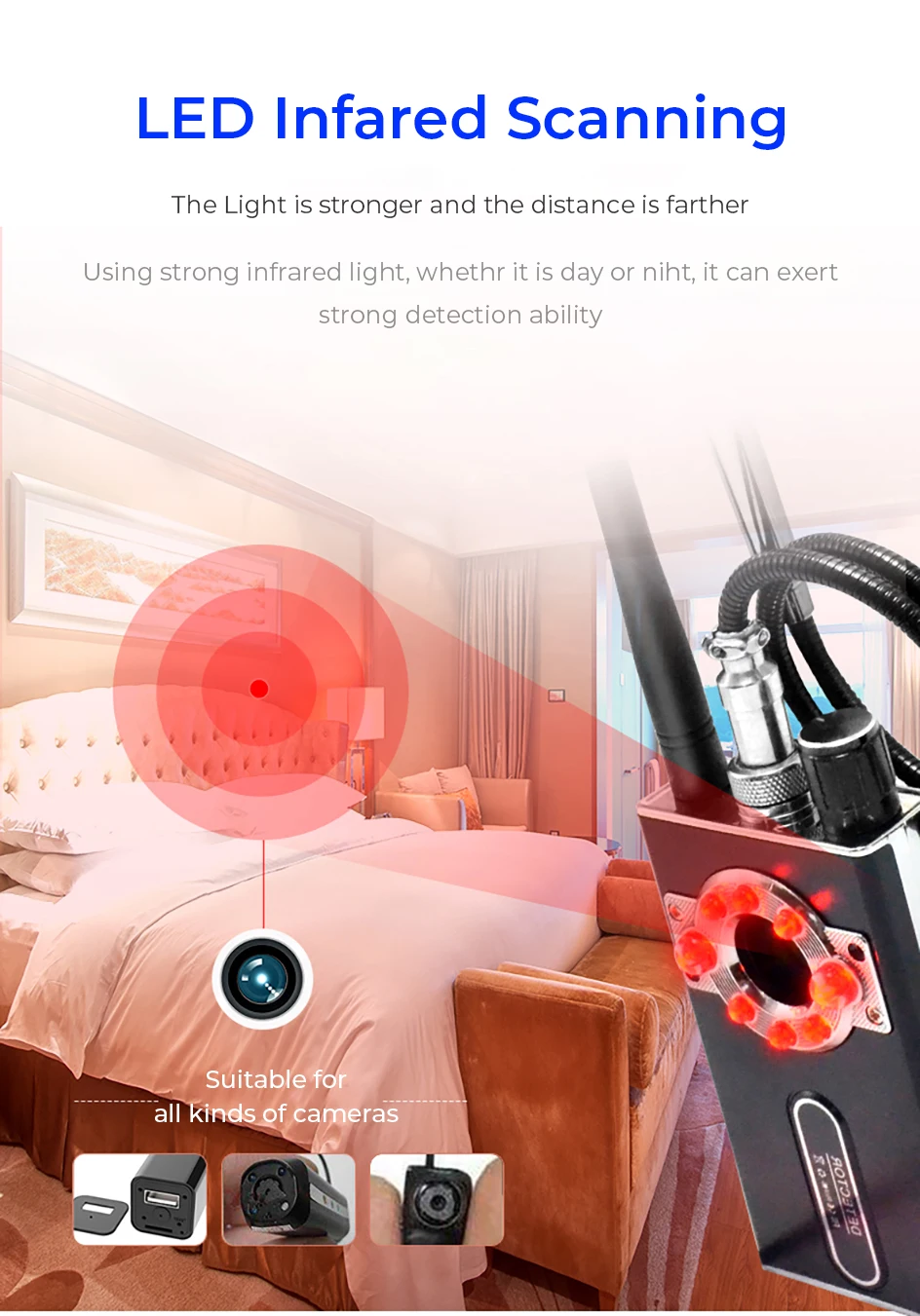 (3)*Infrared Scan Mode:Combine wave light lens, fast search to solve security risks. Concealed equipment has nowhere to hide.