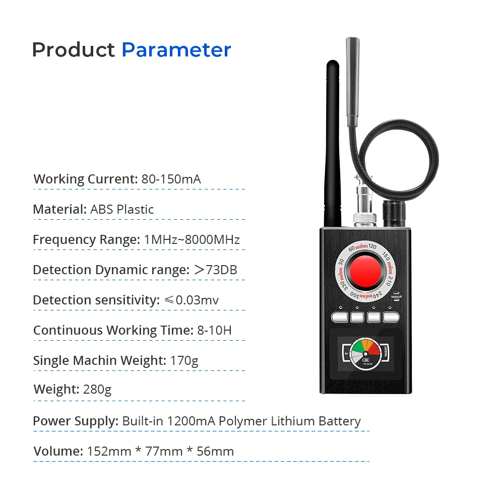 -There's probably a camera keeping an eye on you right now. With the NEWEST SPY DETECTOR K99 you and your family will be protected by easily finding unwanted surveillance spy devices.