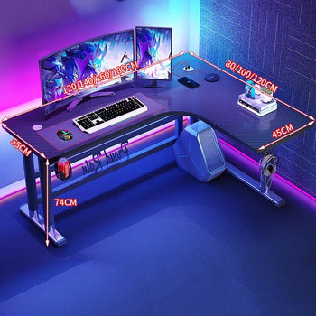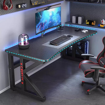 Corner Gaming Desk with Carbon Fiber Surface SPECIFICATIONS Base Material: Alloy Steel Brand Name: XMSJ Color: Black Desk design: Computer Desk Finish Type: Laminated Hign-concerned Chemical: None Installation Method: Assembly...