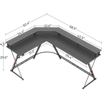 L-Shape Gaming Desk with Drawers, Carbon Fiber L-Shape Gaming Desk with Drawers, Carbon Fiber