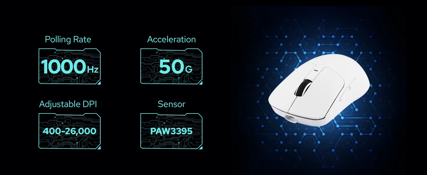 Sensor model: Pixart 3395 (26000 DPI|650 IPS|50G)