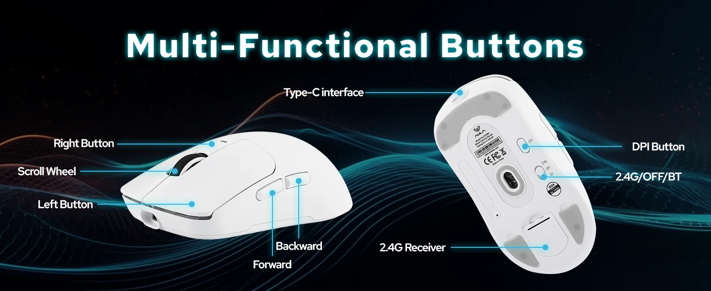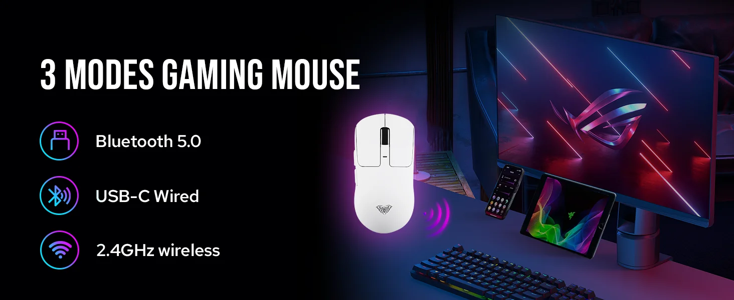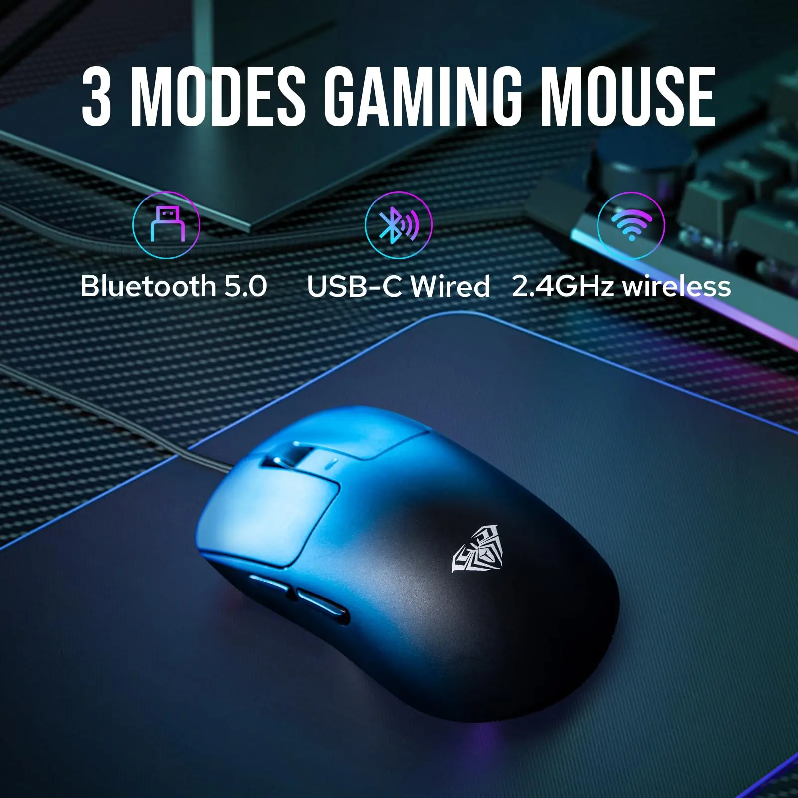 【Tri-Mode Connectivity】 Connect your system to the AULA SC680 in your preferred mode. The mouse supports versatile three-mode connectivity, including wireless 2.4GHz, Bluetooth 5.0, and wired USB connection modes. The 2.4GHz dongle offers a 1k polling rate, ensuring fast and reliable performance. Quickly switch between multiple devices with ease, perfect for a multi-device work environment.