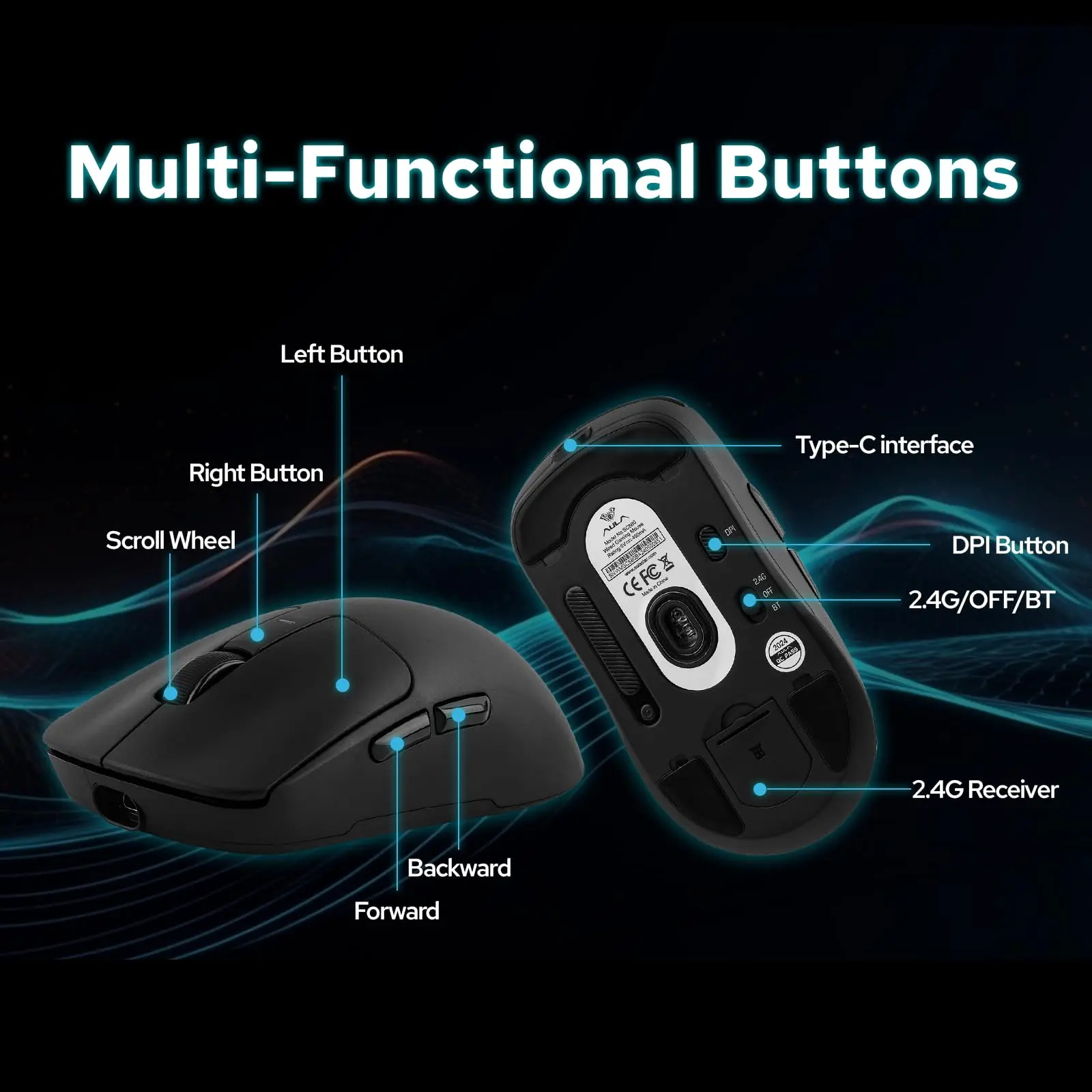 【Flagship Performance with PAW3395 Sensor】 The AULA SC680 is equipped with the flagship PAW3395 optical sensor, offering exceptional tracking accuracy and smooth performance. With a maximum sensitivity of up to 26,000 DPI, 650 IPS tracking speed, and 50g acceleration, this sensor ensures smooth, frame-free, and lag-free movement. The SC680 delivers top-notch performance, making it ideal for both gaming and office use.