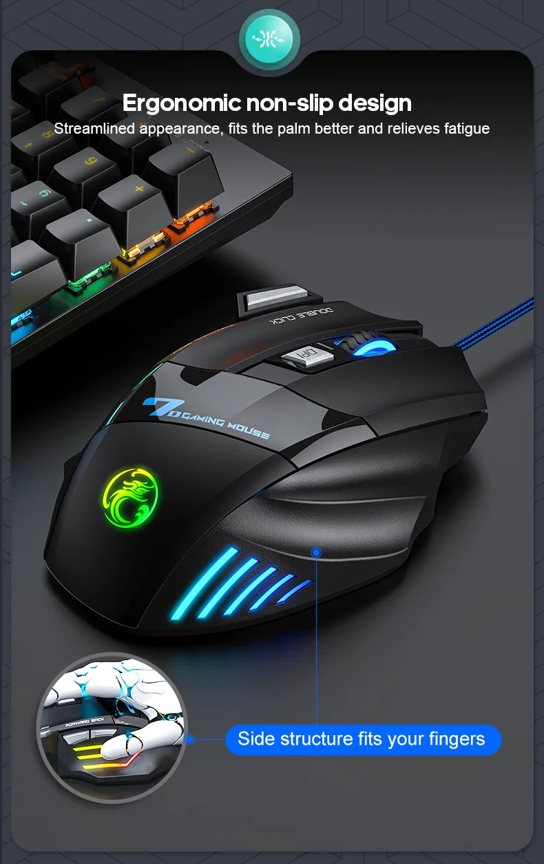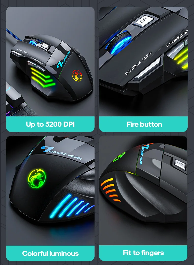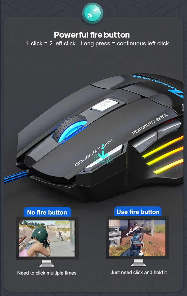 USB Wired Ergonomic Gaming Mouse 4-Button 2400DPI RGB Optical Sensor USB Wired Ergonomic Gaming Mouse 4-Button 2400DPI RGB Optical Sensor