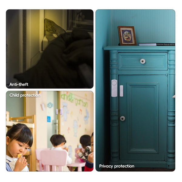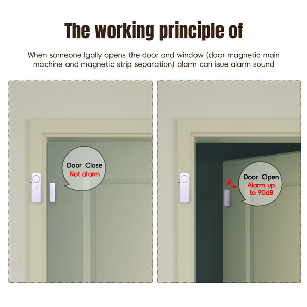 Switch to"ON" position of the main unit so as to be in alert state, it will give an 90bp alarm if the magnetic senor has been separated fron the alarm device when someone opens the door/window.