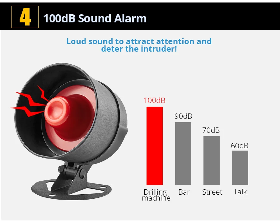 DIY expandable home burglar security alarm system-this alarm horn support up to 40 pcs wireless detectors,10 remote keyfobs,10 doorbell buttons,loud up to 110db deluxe door alarm system for peace of mind.