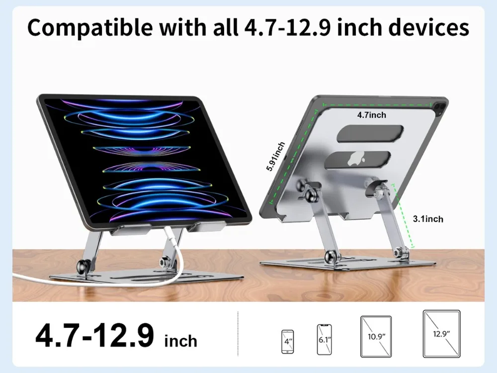 [Upgrade Large Base]Made of high-quality aluminum alloy, the larger heavier base greatly improves the stability of the tablet stand.