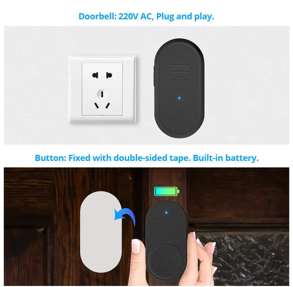 This smart wireless doorbell adopts advanced wireless transceiver technology, high-quality voice processing technology, up to 32 music, and its performance is stable and reliable. Doorbell, anti-theft, welcome multi-purpose. Suitable for home, villa, shop, hotel,and office etc.