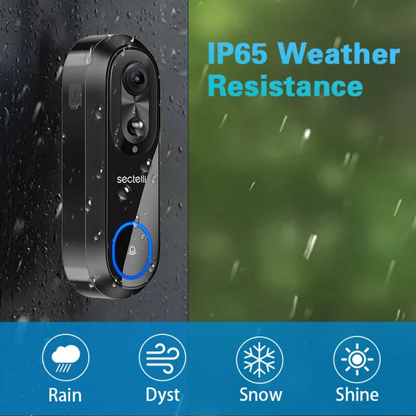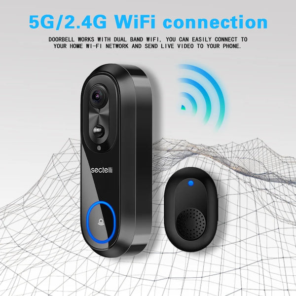 2024 Latest Doorbell Camera Wireless, Support WiFi 5GHz 2.4GHz Dual Band, Tuya Smart APP, 1080P Video, 2-Way Audio,Battery Powered,Smart Video Doorbell