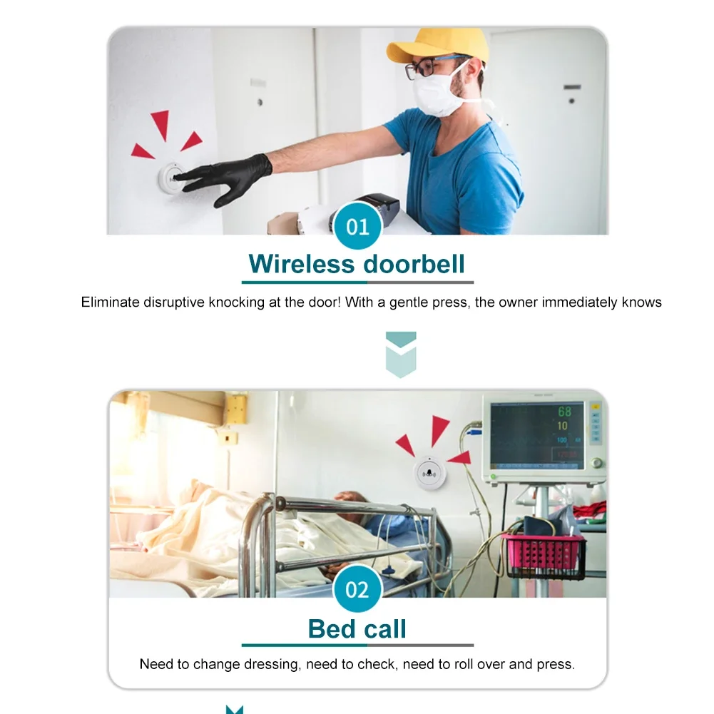 ![]() USB Emergency Call Button Strong Signal Intelligent Door Chime One-key Alarm Wireless Emergency Doorbell Remote Control for Home Feature: Specification: Origin: Mainland China Model Number: Wireless Doorbell Number of music: 30 songs Output mode; Speaker Demodulation mode: ASK Shell material: ABS Control mode: matching remote control Size: 56.5 x 33 x 5.3mm/2.22 x 1.3 x 0.2inch (without case) Product weight: 8g (without shell, with speaker) Operating voltage: DC5V/1A Standby current: 4.6mA Operating current: 120mA Receiving sensitivity: -105dB Operating temperature: -20-70°C Note: ![]()
