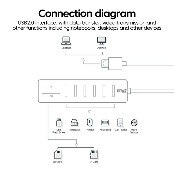 *100% brand new and high quality USB 2.0 HUB with SD/TF card reader.