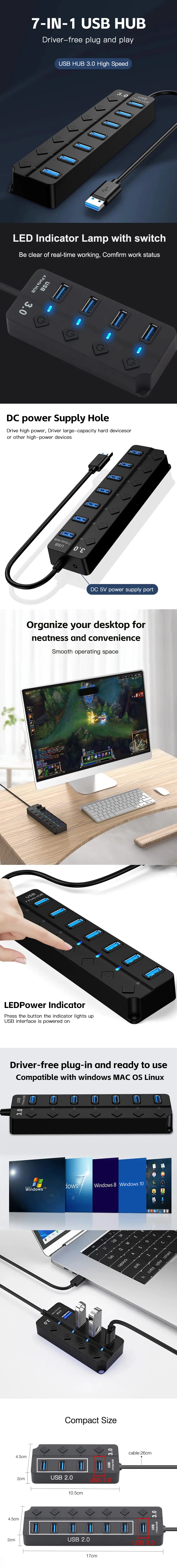 USB3.0 HUB 4in1 7in1USB Splitter 2.0 USB Adapter Multi-Port Independent Power Switch Extender 30CM Cable USB3.0 HUB 4in1 7in1USB Splitter 2.0 USB Adapter Multi-Port Independent Power Switch Extender 30CM Cable