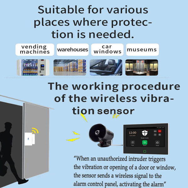 1.The sensor not only accurately monitors vibrations or glass breakage on doors and windows, but also monitors unauthorized opeing of doors and windows. Once triggered, the sensor sends a 433MHz wireless signal to the alarm host, which then activates the alarm. It must be useed with a 433MHz alarm host or Wi-Fi gateway and cannot operate independently.