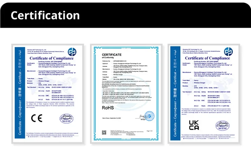 • FCC Certified :This charger has been certified by the FCC, ensuring that it meets safety and environmental standards.