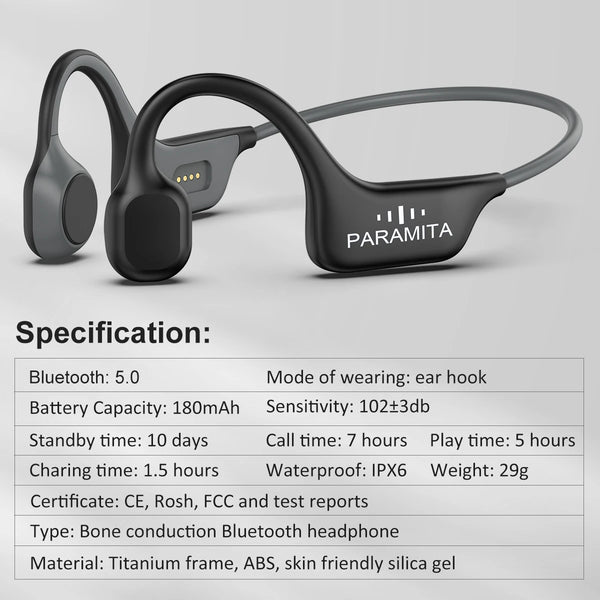 【LONG TIME WORKING】- Bone conduction headset was built-in 180mAh lithium battery. Working last 5 hours after full charging (80% volume).
