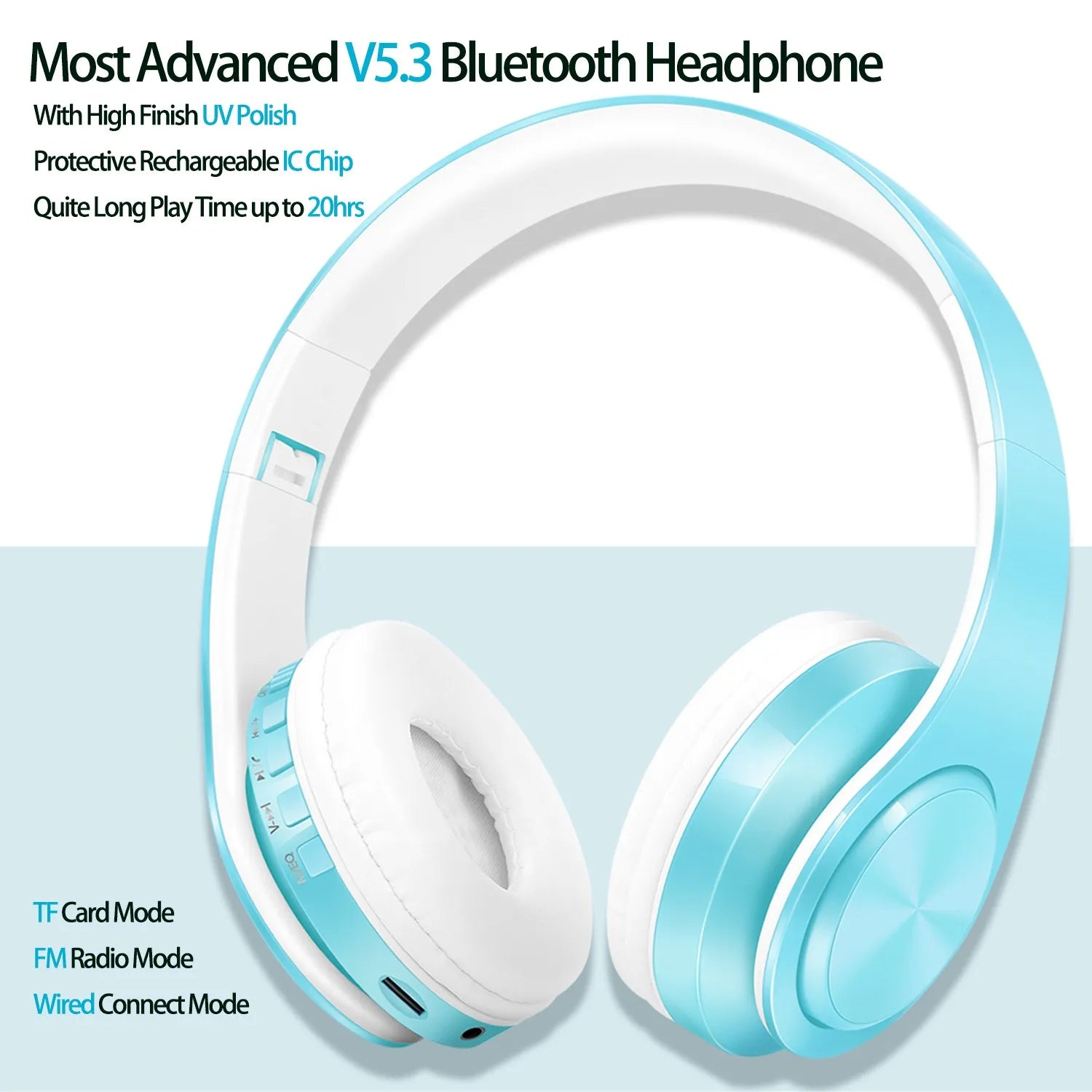 1)【HI-FI,CD SOUND QUALITY】- The closed-back design of bluetooth headphones provides immersive Hi-Fi sound with BLUETOOTH V5.3 chip and 40mm drivertogether , which make exceptional sound reproduction and wide dynamic range to provide outstanding sound quality, rich and strong bass, crisp and clear highs.
