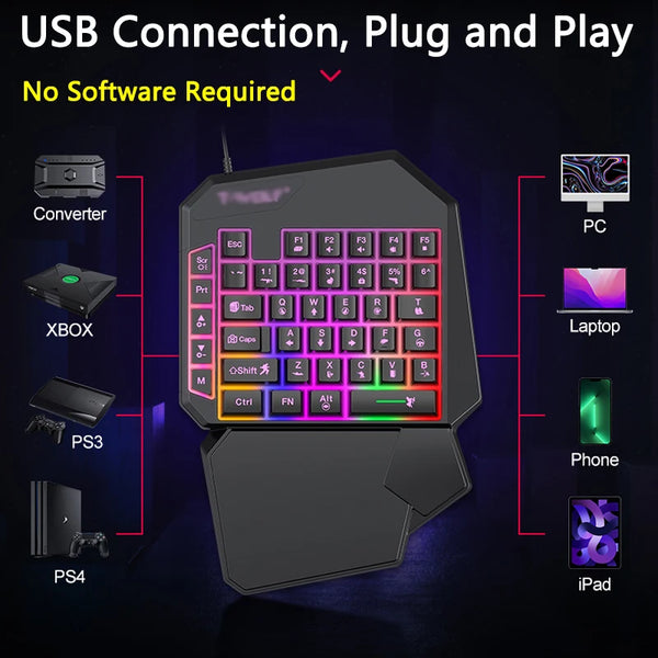 40-key one-handed USB wired mini gaming keyboard with ultra-thin color light 40-key one-handed USB wired mini gaming keyboard with ultra-thin color light