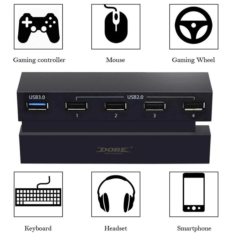 Video Game Accessory Type:USB Hub Color:Black Compatible Devices:mouse, smartphone, and more, gaming keyboard, PS controller, gaming headset Assembled Product Dimensions (L x W x H):4.88 x 2.09 x 1.18 Inches