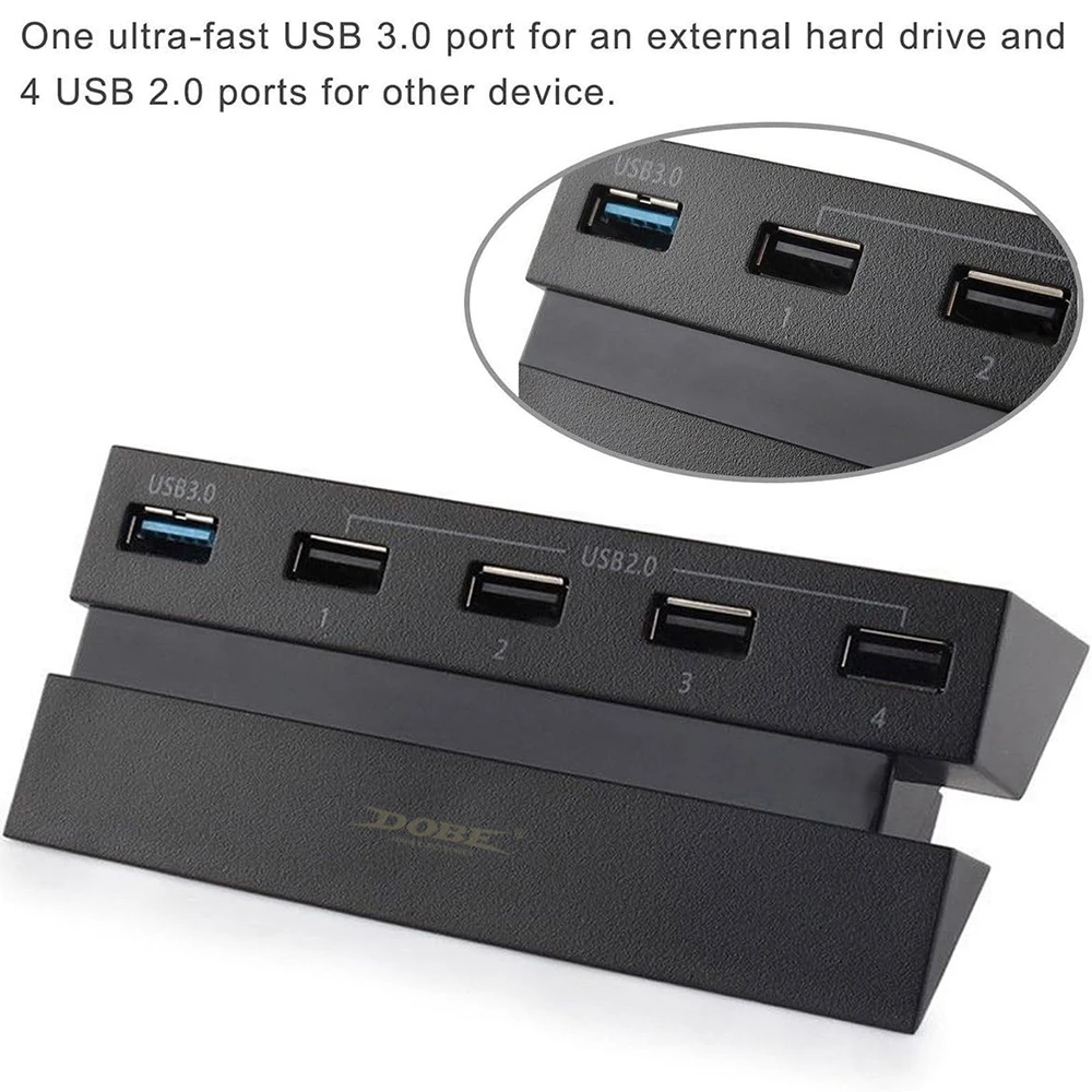 This USB hub is specially designed for Playstation 4 console. There is enough port to meet your need of connecting multiple devices to your game console at the same time. 5 port USB hub, allow charging of up to 5 devices simultaneously, which is equipped with 1 USB 3.0 and 4 USB 2.0 ports. One ultra-fast USB 3.0 port for an external hard drive(Supports 800mA and below), enough to transfer data in seconds. Stable operation, no lag, no delay. This USB hub can be connected with a keyboard, mouse, gaming controller, and many other USB wired peripherals. You can connect your smartphone and tablet to it too. This USB hub for PS4 is also easy to install, just plug it into your PS4 console, use a USB cable (not included) to connect your game controller to the console, and you're good to go. The sleek, simple shape matches the design of the Playstation 4 console and is compact and lightweight, making it a must-have accessory for hardcore gamers and casual gamers alike. Come and add the TSV USB 3.0 High-Speed Charger Controller Splitter Expansion for Playstation 4 PS4 Console to your cart and enjoy the game with your friends and family.