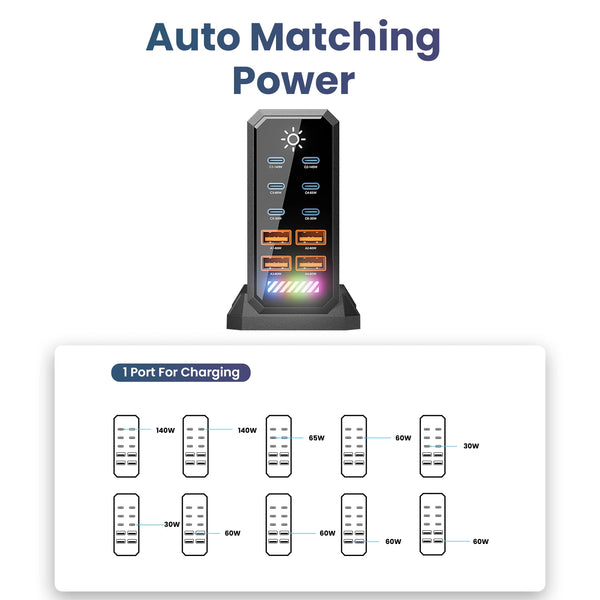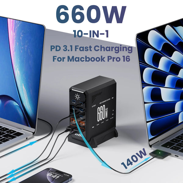 660W GaN USB C Charger Station 10 Port ( 6 Type C + 4 USB A ) Fast Charger Type C 140W PD3.1 PD3.0 PPS Quick Charger For Macbook Pro iPad iPhone 16 Samsun S25 S24 S23