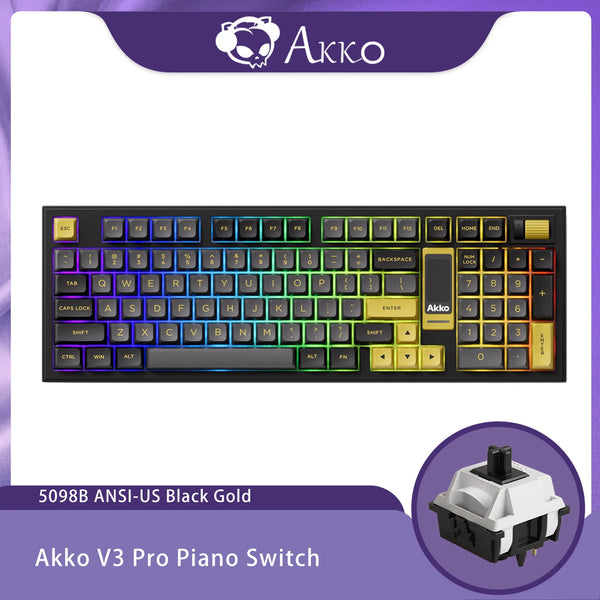 Akko 5098B Black Gold Wireless Mechanical Gaming Keyboard With RGB Backlit Gasket Akko 5098B Black Gold Wireless Mechanical Gaming Keyboard With RGB Backlit Gasket