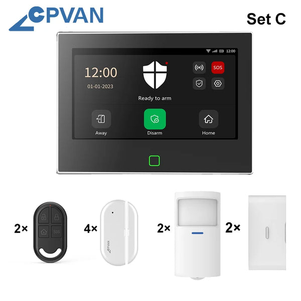 CPVAN Tuya Smart Home Alarm System WiFi 4G 7” Panel DIY Security Kit CPVAN Tuya Smart Home Alarm System WiFi 4G 7” Panel DIY Security Kit