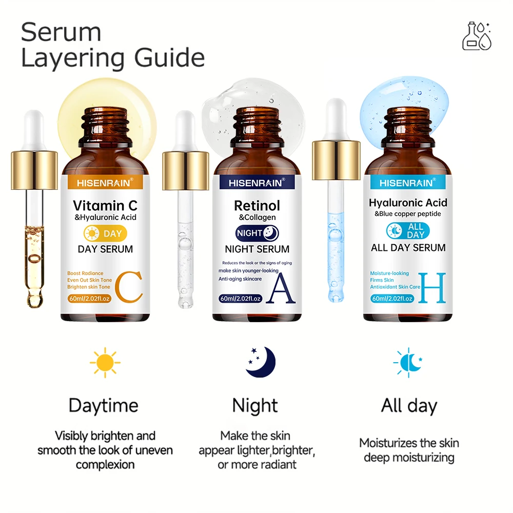 HISENRAIN Vitamin C + Retinol + Hyaluronic Acid Serum Duo | Anti-Aging Brightening & Hydration Combo | For All Skin Type.