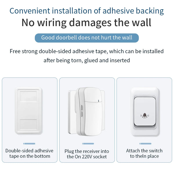 🔔This doorbell does not need wiring, plug and play, convenient and practical, easy to install