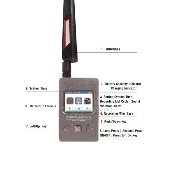 SPECIFICATIONS Brand Name: NoEnName_Null Hign-concerned Chemical: None Model Number: DS996PRO Origin: Mainland China Package Features: 1.Magnetic Electromagnetic Wave Signal Detector can detect frequency from 10Mhz to 6Ghz Accurately.2.Can detect...