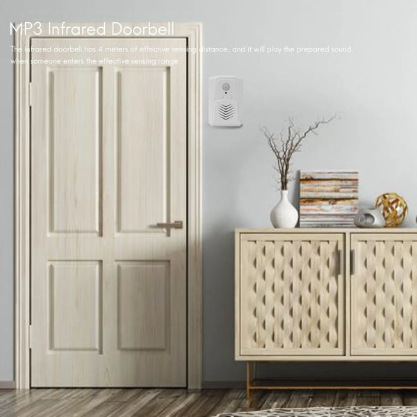 SPECIFICATIONSBrand Name: NoEnName_NullHign-concerned Chemical: NoneOrigin: Mainland ChinaThe infrared doorbell has 4 meters of effective sensing distance, and it will play the prepared sound when someone enters the effective sensing range....