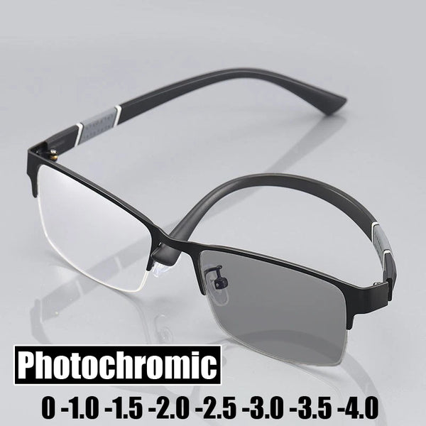 Smart Photochromic Near Sight Sun Glasses for Business Women Men Retro Metal Half Frame Myopia Eyewear Anti-UV Minus Goggles Smart Photochromic Near Sight Sun Glasses for Business Women Men Retro Metal Half Frame Myopia Eyewear Anti-UV Minus Goggles